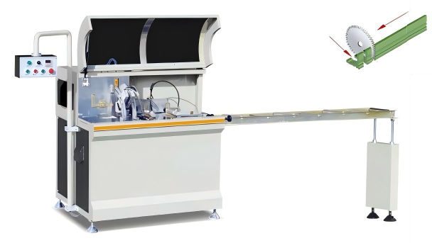 The cutting tool adopts cemented carbide saw blade, which has high cutting speed, high productivity and high machining precision. The feed motion pair adopts linear motion bearing, which has small motion resistance and high precision. The feeding mechanism adopts automatic feeding system, which is stable and reliable with high efficiency. With high automation, the advance and retreat of clamping and sawing are controlled by pneumatic system, which is convenient to operate, safe and reliable, and has high productivity. With automatic counting function. Continuous cutting of 6-meter angle profile can be realized only by clamping once. Automatically save the number of cut segments in case of power failure. Adopt micro spray cooling device to save the processing cost of doors and windows (alternative).